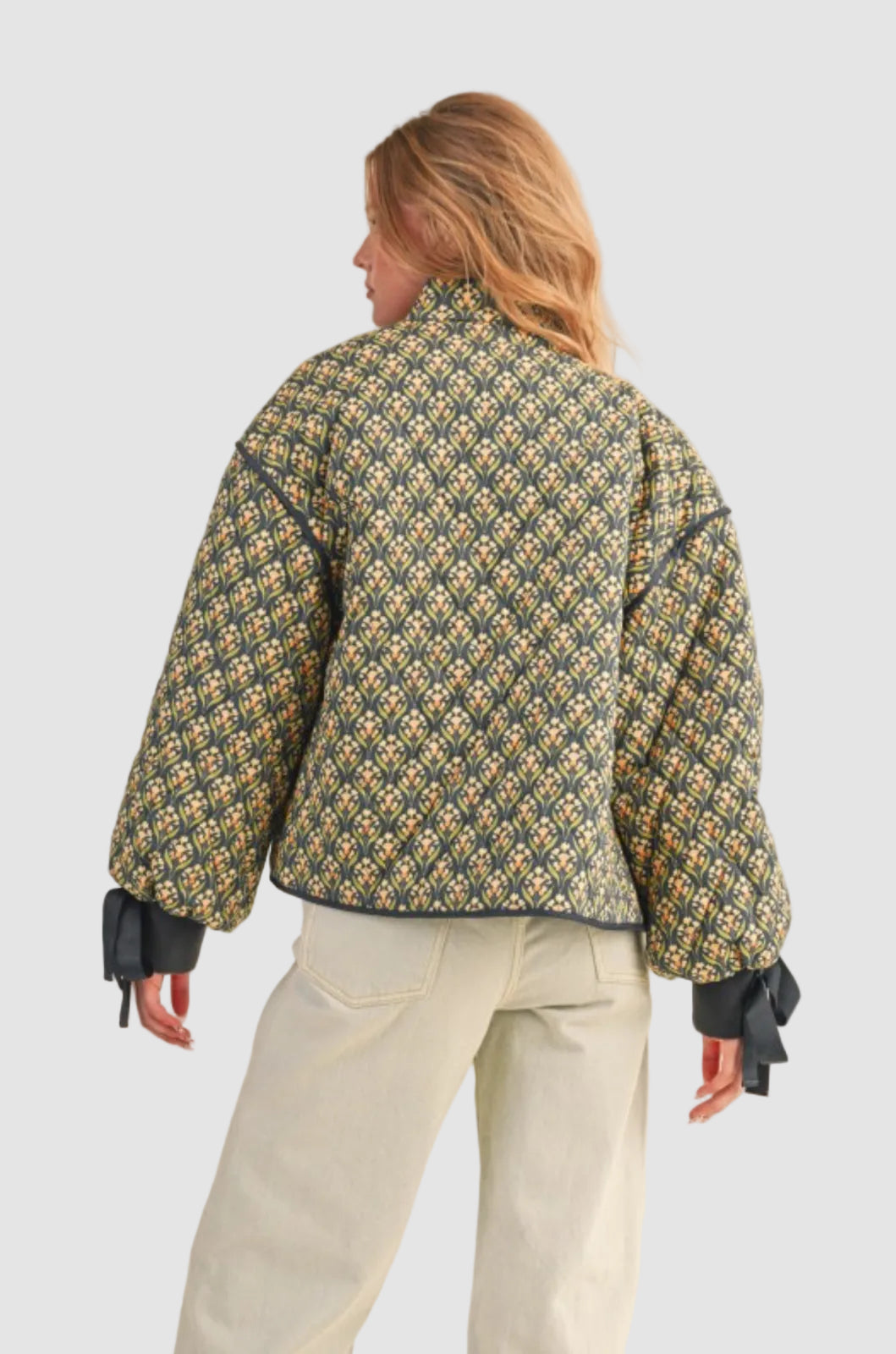 + Mixed media puff jacket with hood + Quilted heart puff bodice