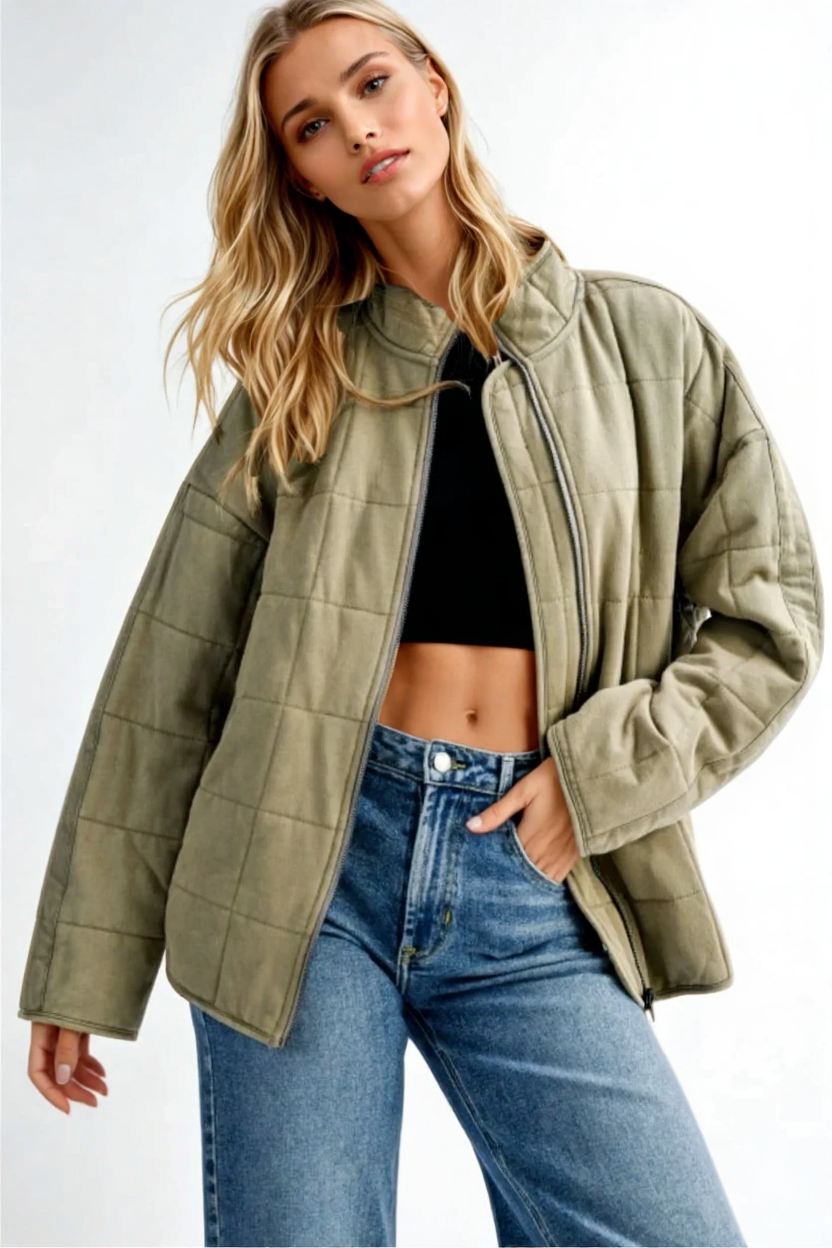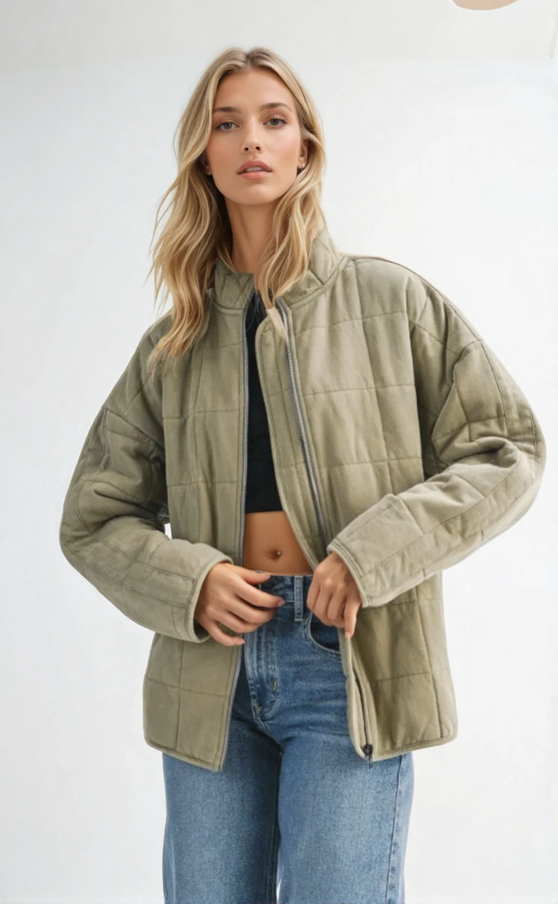 Introducing the perfect quilted washed oversized Dixie jacket features a thoughfully crafted design that strikes the ideal balance between fashion-forward and comfort. The oversied silhouette exudes a relaxed and laid-back vibe while the dolman sleeves add a touch of sophistation and uniqueness. The material is made from high-quality 100% cotton fabric that is pleasant to the touch and surely to to turn heads wherever you go.