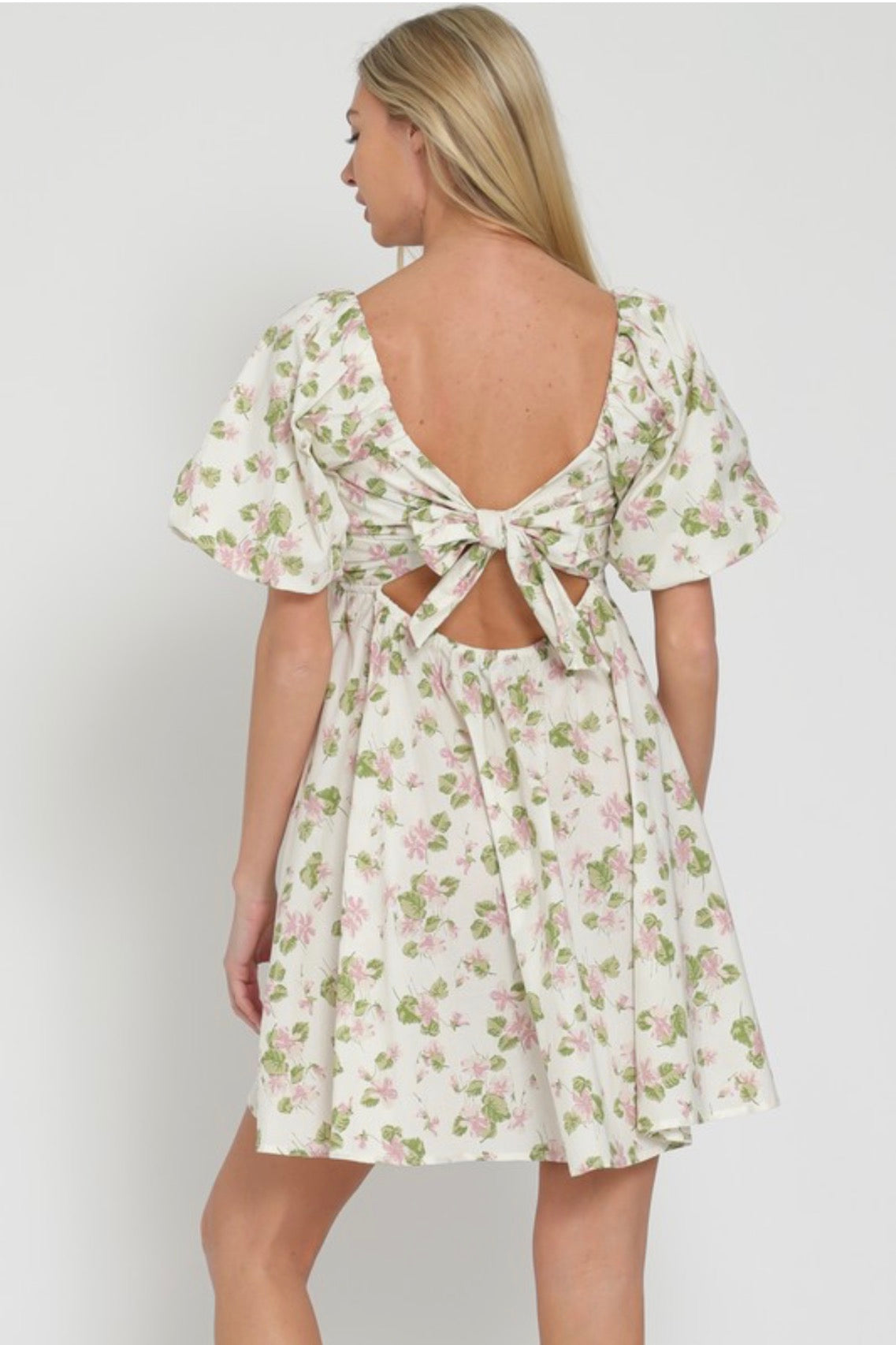 SHORT BUBBLE SLEEVE TIE BACK CHEST MINI DRESS